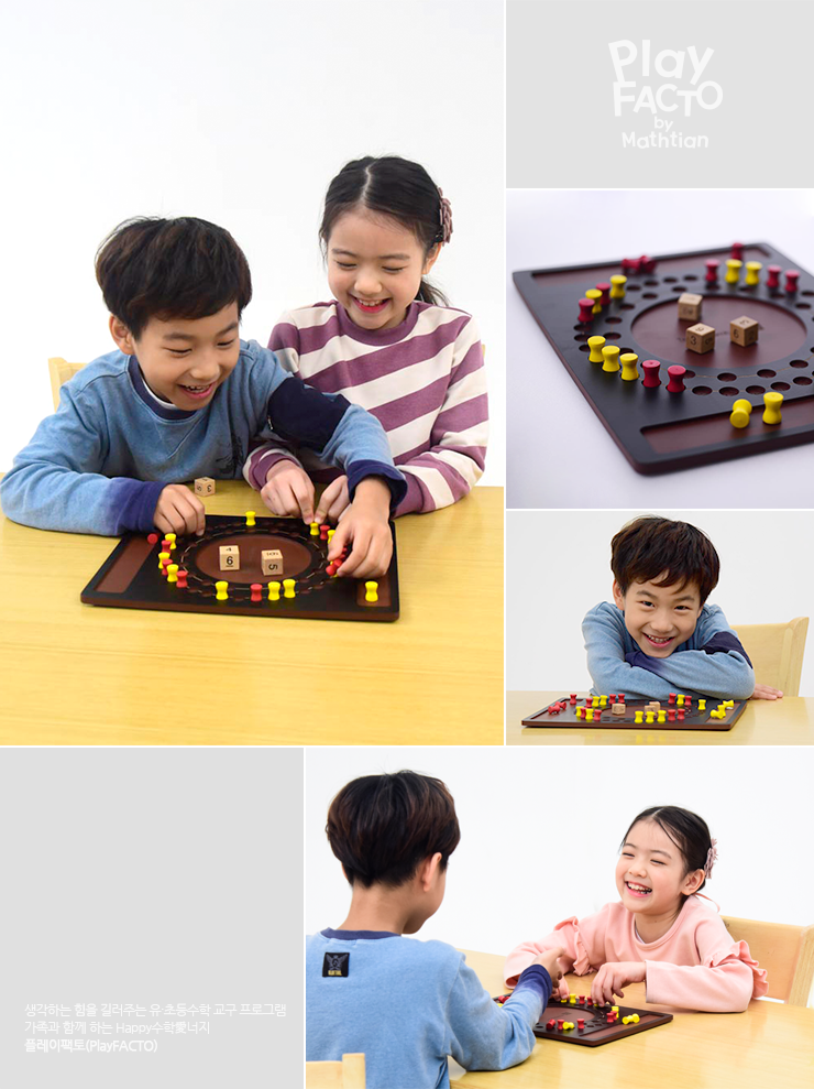 2 | Five Dice (파이브 다이스) 자세히보기(클릭!) | 5세 이상 | 주어진 수를 가능한 한 많이 사용하여 덧셈, 뺄셈으로 목표수를 만드는 연산 보드게임입니다. 주사위를 굴려 나온 5개의 수를 되도록 많이 사용하여 목표수를 만들기 위해 덧셈과 뺄셈을 계산해 보는 과정에서 시행착오를 경험하며 자연스럽게 연산 감각을 기르고 전략적으로 생각하는 힘을 키울 수 있습니다. |