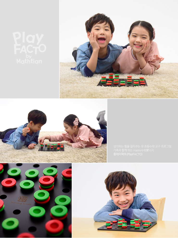 17 | Winning Tower (위닝 타워) 자세히보기(클릭!) | 5세 이상 | 위닝 타워는 빨간색 칩과 초록색 칩 중 각자의 색상칩을 정한 후 번갈아가며 칩을 놓아 최대 5층까지 더 많은 탑을 쌓는 전략보드게임입니다. 상대방의 전략을 예상하며 칩을 쌓는 두뇌게임으로 문제해결능력과 사고력 향상에 도움을 줍니다. |